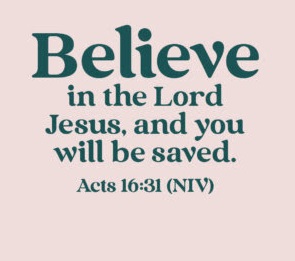 The Bible says in Acts 16:31, “Believe in the Lord Jesus, and you will be saved” (NIV).